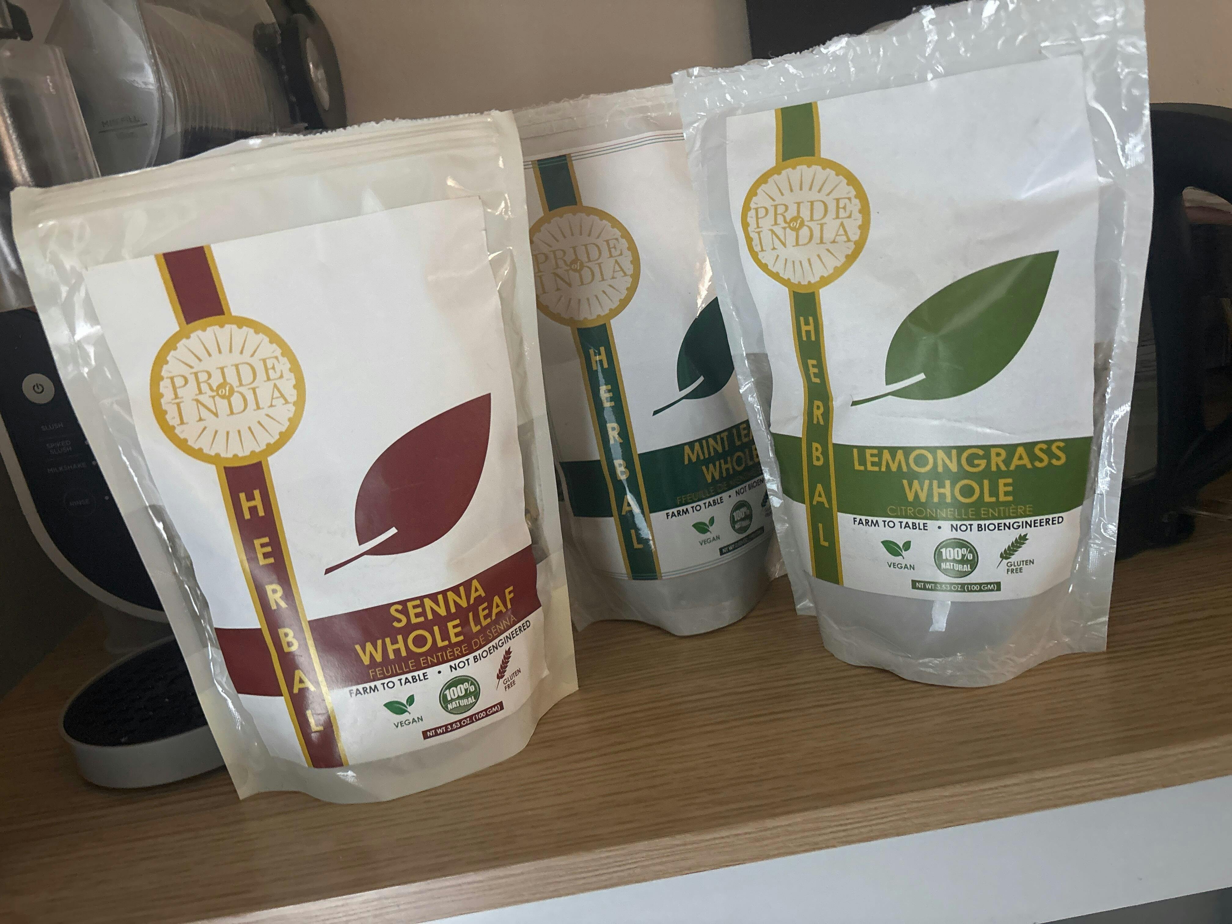 Size: 3 herbs (Mint Leaf Whole, Lemongrass Fine Cut, Senna Herbal Tea Leaf Whole)