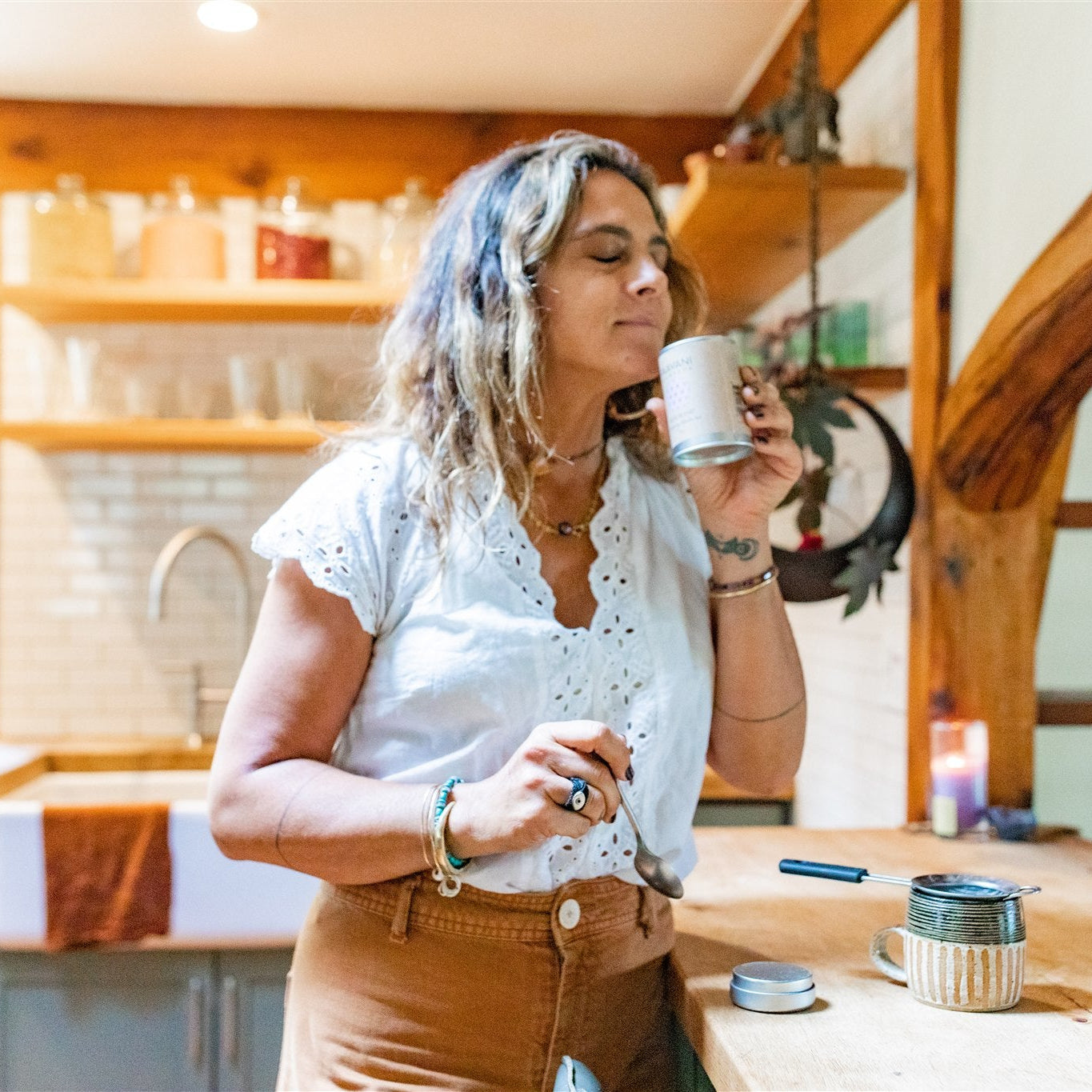 Drinking a warm cup of tea feels like a hug, especially when it’s hand-blended with the spirit of Ayurveda & crafted from 100% organic herbs, roots, flowers & seeds. Our loose-leaf, caffeine-free medicinal teas deliver the highest potency of ancient plant wisdom, offering seasonal & doshic balance to support your well-being anytime, anywhere.