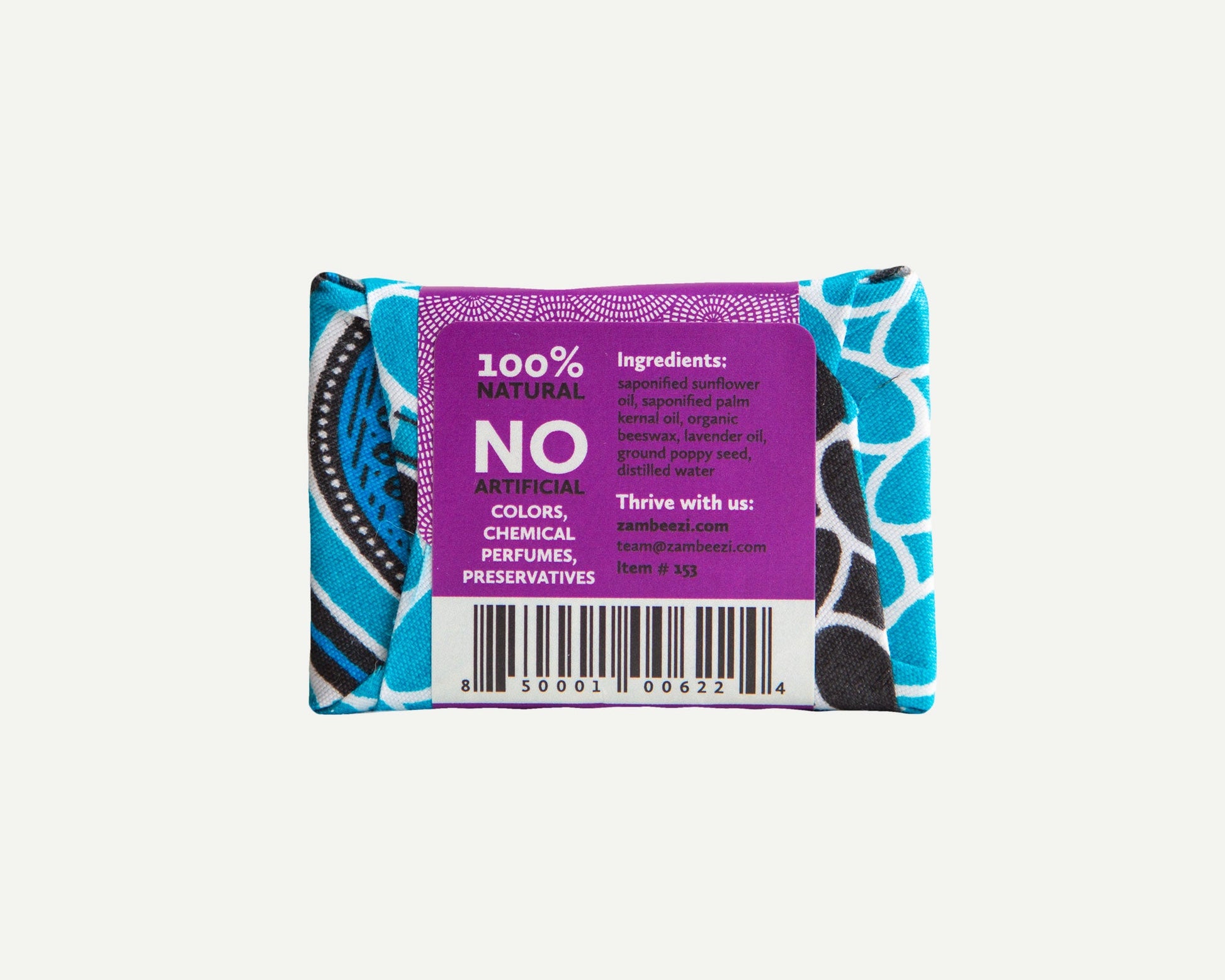 Why Zambeezi Soap: Thoughtfully crafted, each bar invites you to reimagine your daily routine. The soap's natural aromatics will leave you feeling as if you've stepped into an open lavender field in the heart of Zambia, Africa. Sunflower oil and organic beeswax provide a skin softening foundation and palm kernel oil creates a lather unparalleled by other soap bars. Paired with locally sourced essential oils, your skin is guaranteed to be reinvigorated. And if that isn't enough, your purchase empowers. We're about people; offering more and giving back.